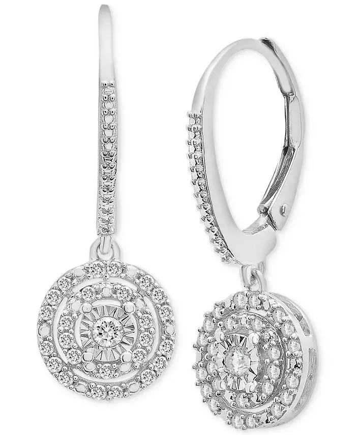 Diamond Circle Leverback Drop Earrings (1/4 Ct. Tw) in Sterling Silver, Created
